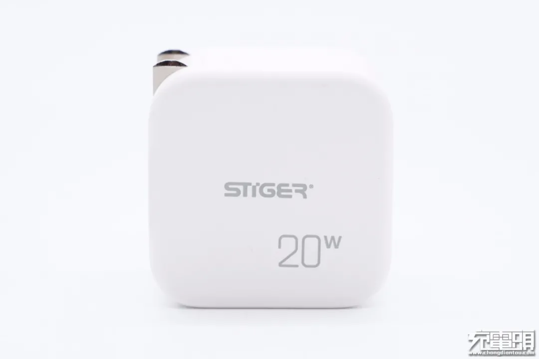 斯泰克20W PD快充充电器采用“豆腐块”方正机身造型设计,边角过渡圆润,且配备可折叠插脚,整体非常小巧,对于用户来说便携便用。充电器长度为42.14mm,宽度为42.03mm,厚度为29.29mm。