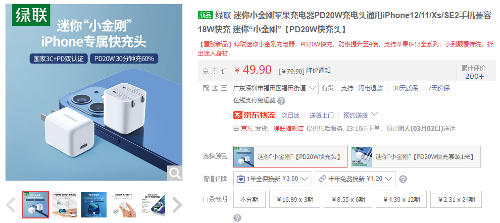 绿联PD20W迷你小金刚苹果充电器 https://u.jd.com/uxgKmox