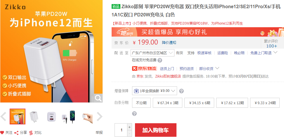 Zikko 20W PD充电器 https://u.jd.com/uQgsyHL
