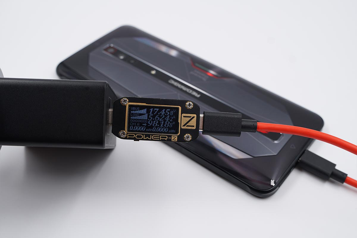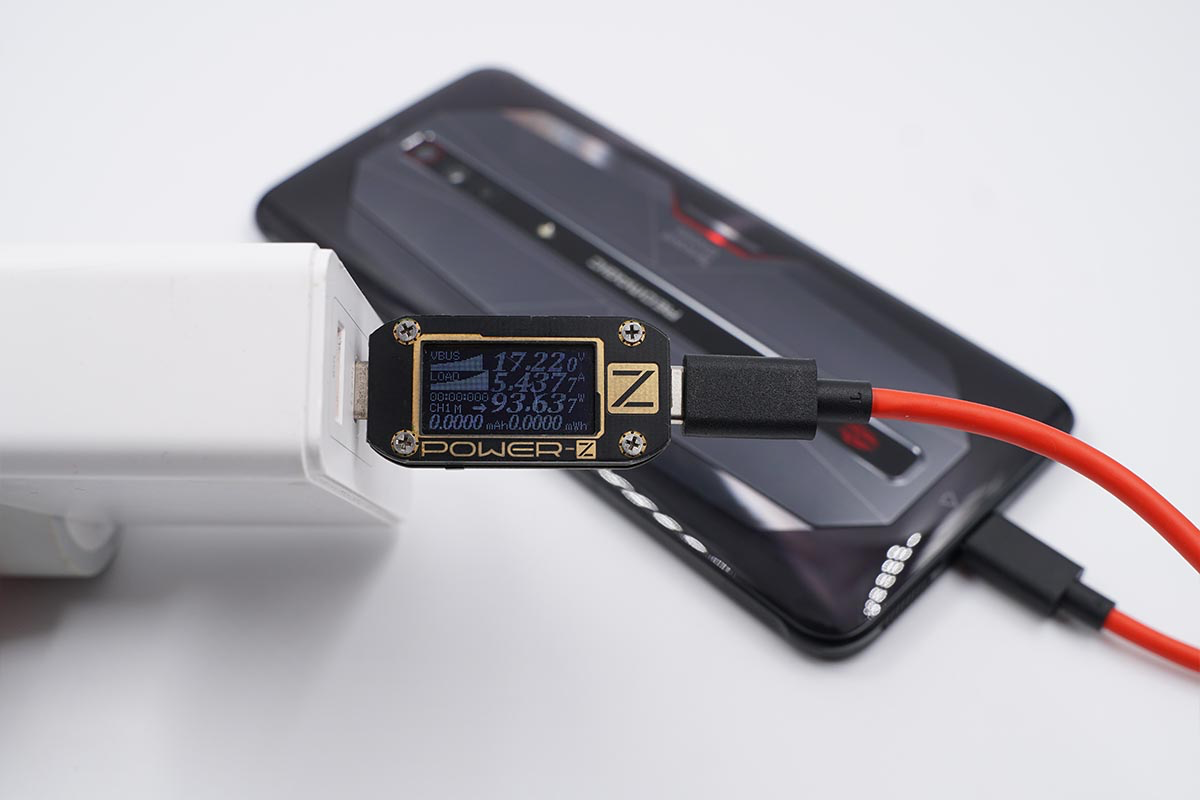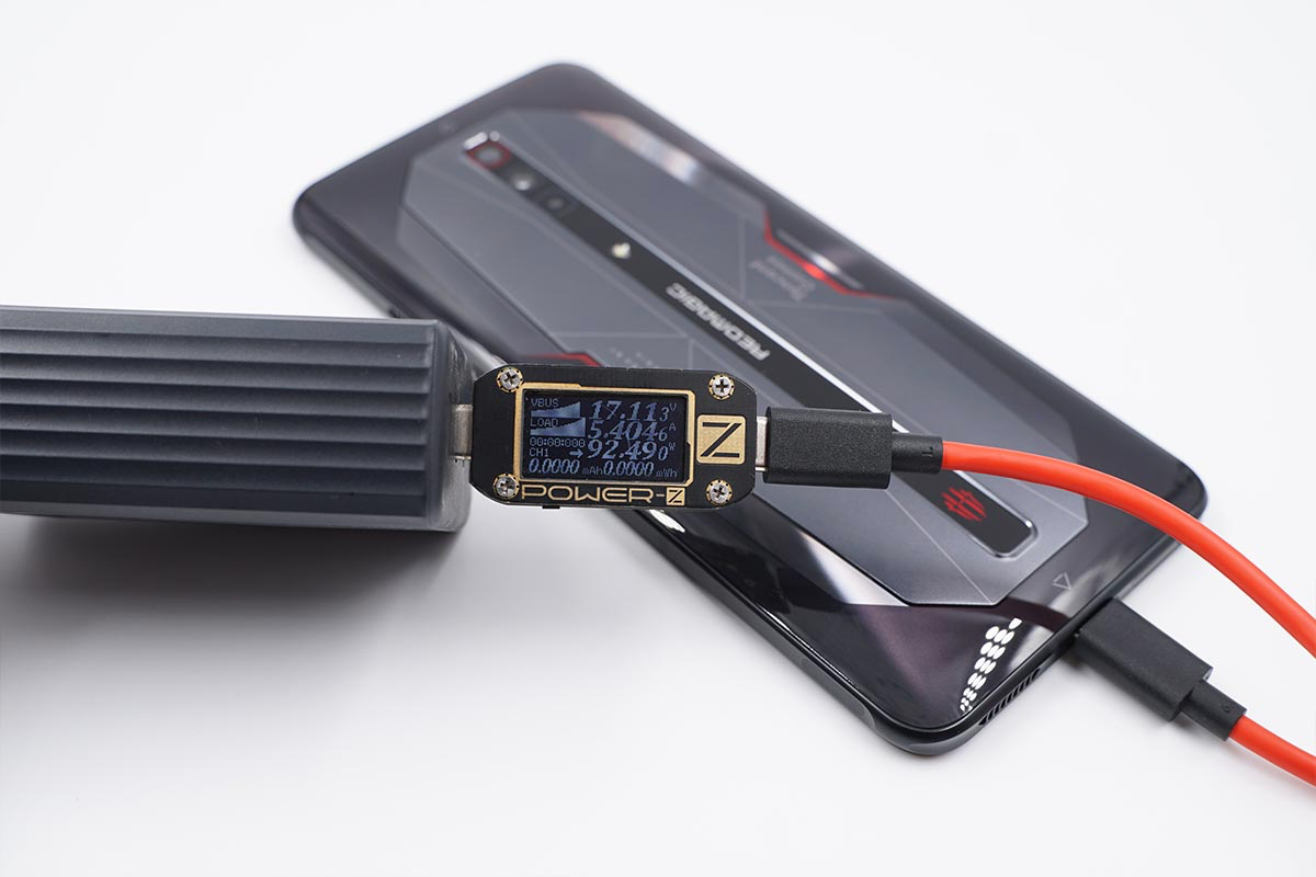 使用征拓S4 100W氮化镓充电器为腾讯红魔6 Pro充电,功率为17.11V 5.40A 92.49W,可以触发120W快充。