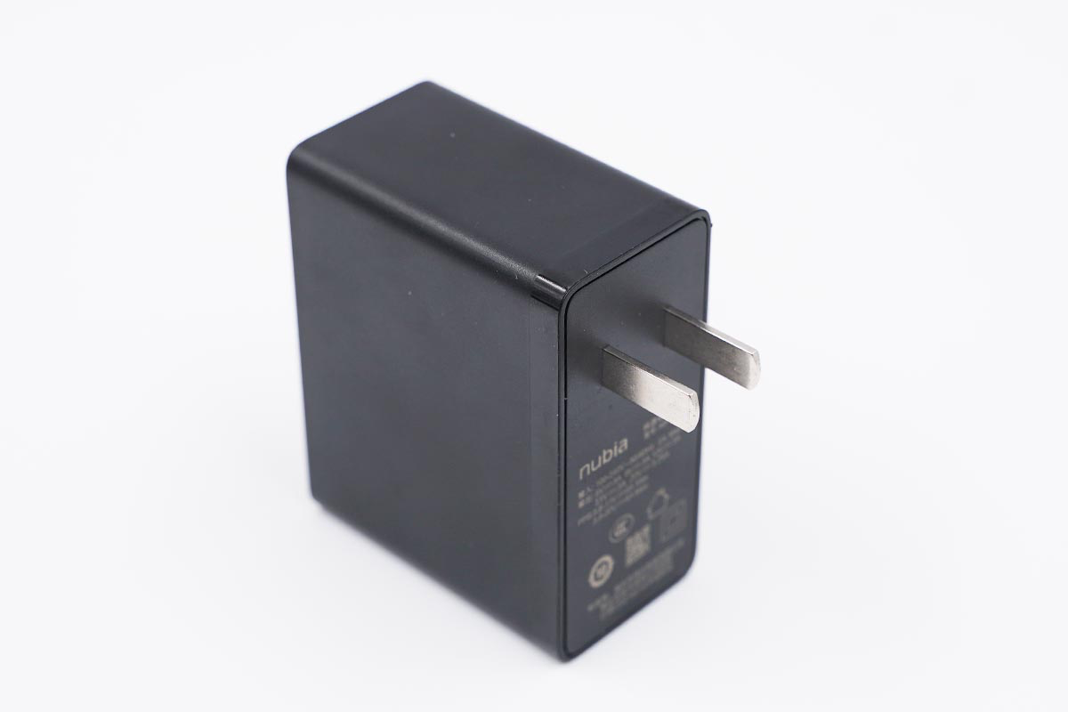 腾讯红魔6 Pro的包装盒内附带了一个支持120W快充的充电器,为了完全榨干内部的空间,让120W充电器尽可能的小,除了采用氮化镓元器件之外插脚也被设计成了不可折叠的形式。