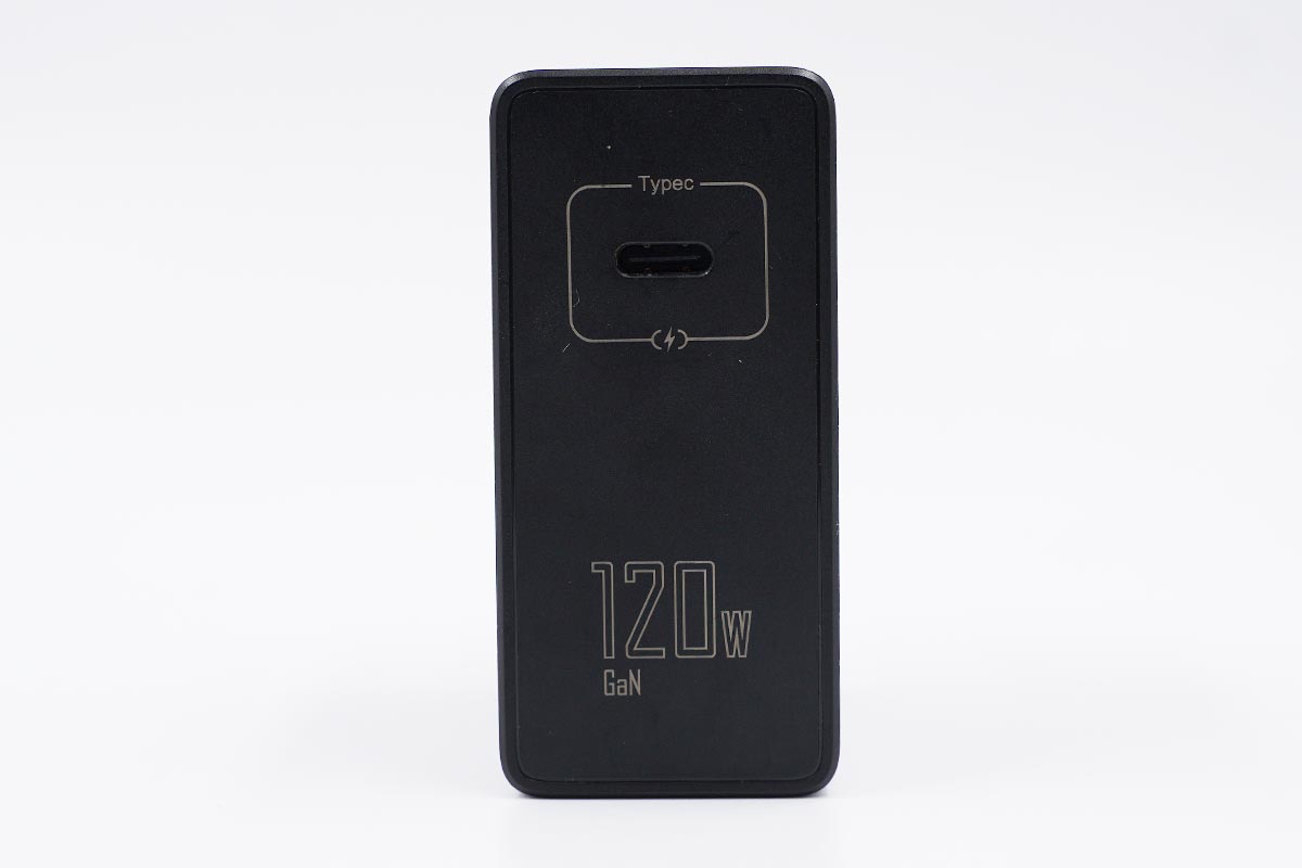 充电器采用目前通用度很高的单USB-C物理输出接口设计,下面120W和GaN的标识也说明了充电器的性能。