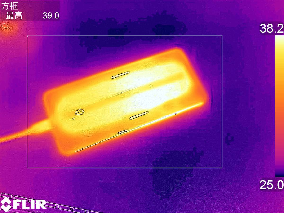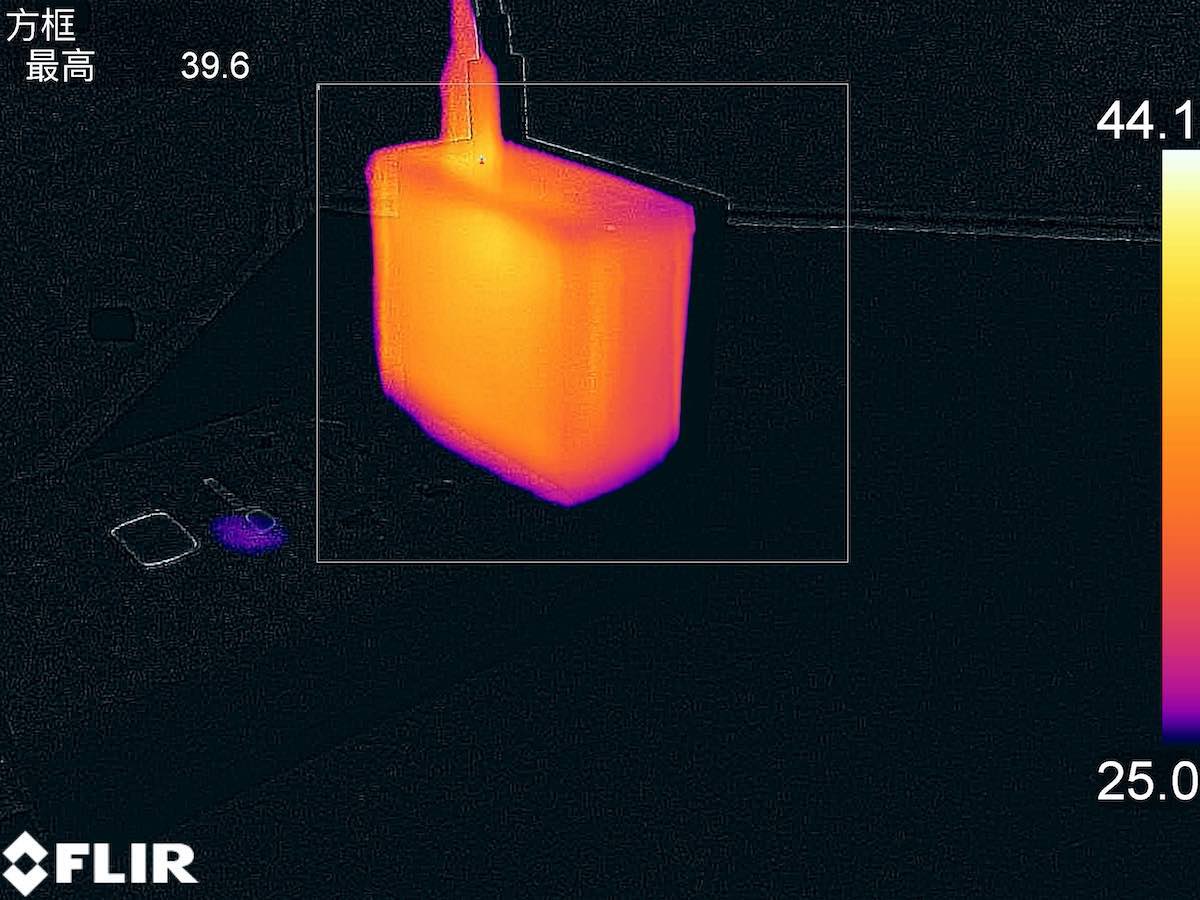 8分39s时,使用热成像仪采集到充电器的最高温度为39.6℃。