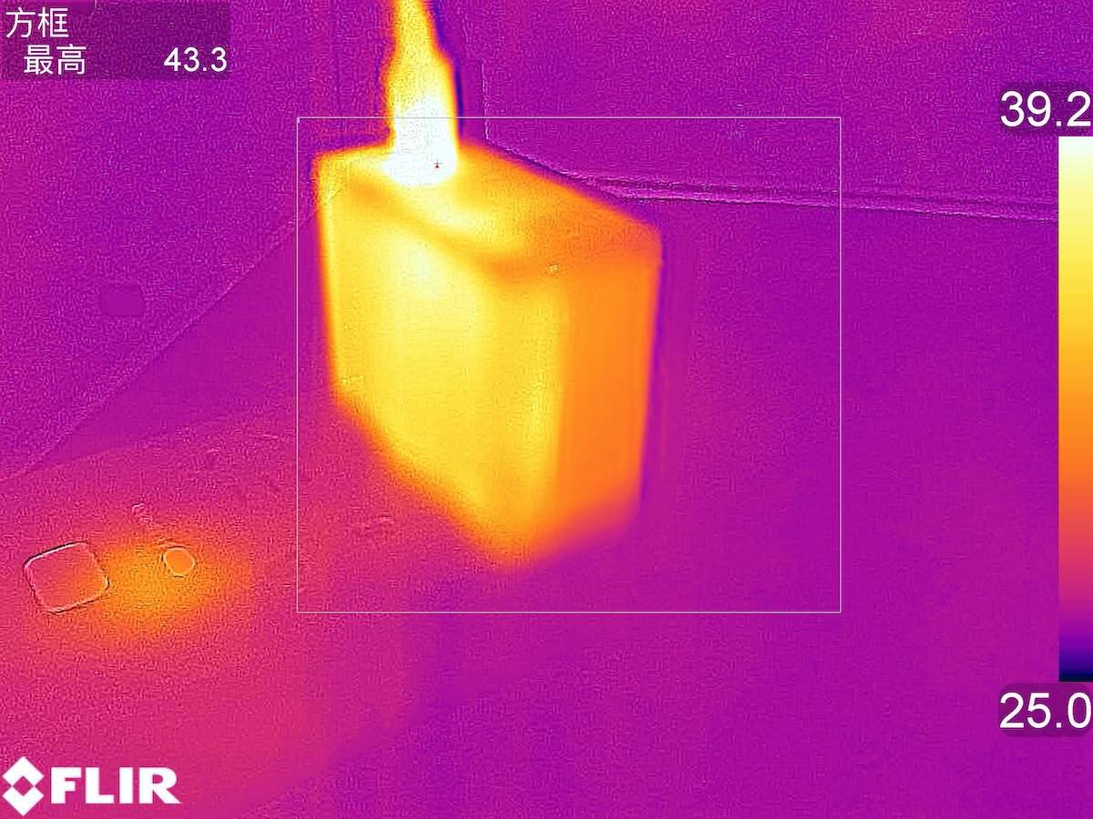 4分43s时,使用热成像仪采集到充电器的最高温度为43.3℃。