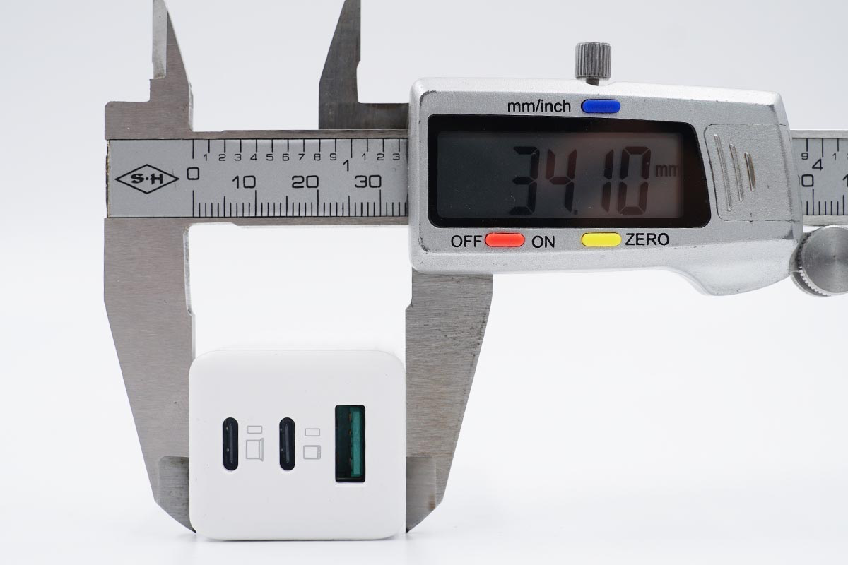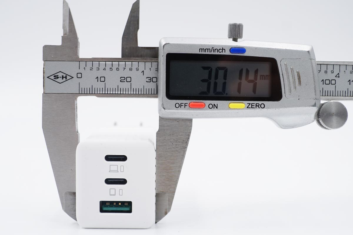 征拓S3二代氮化镓充电器的三维参数约为66.03x30.14x34.10mm,可以得出充电器的体积约为67.86cm³,以最高输出65W计算,功率密度约为0.95W/cm³ 。