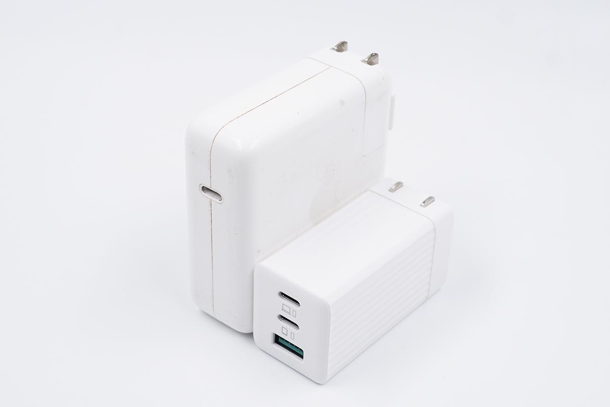 两款充电器的长度相同,高度上可以直观的感觉到二代的小巧。