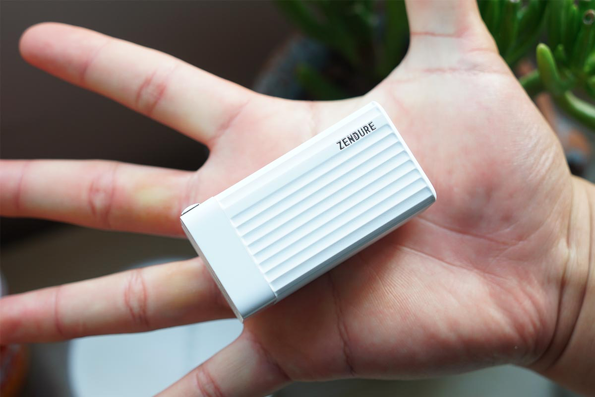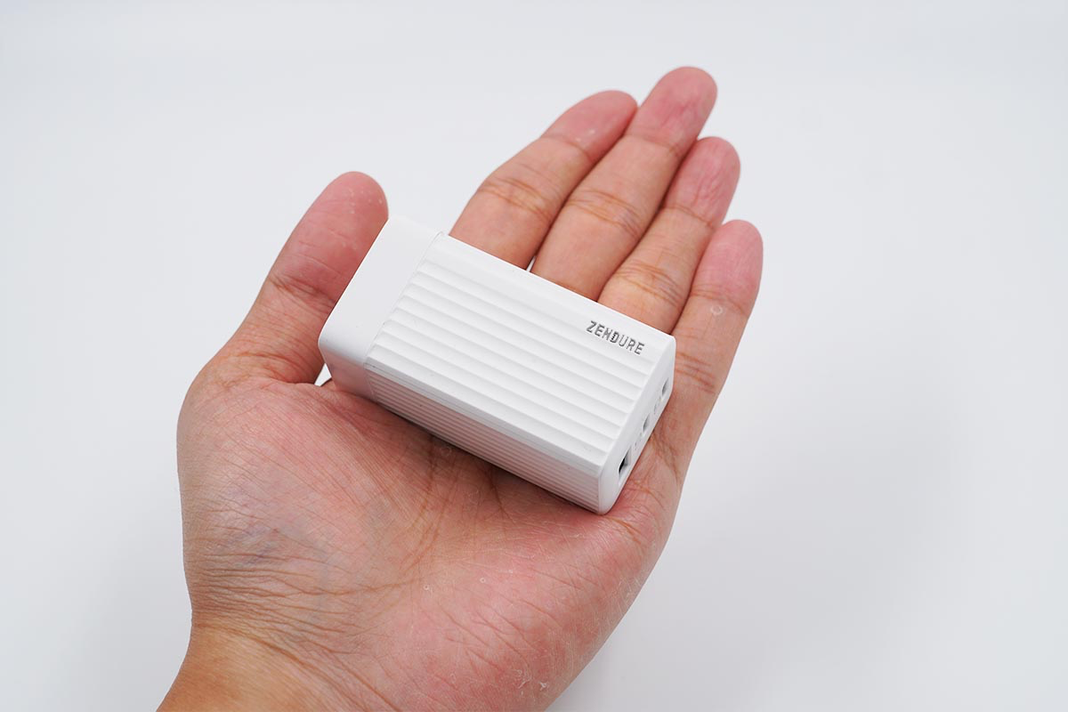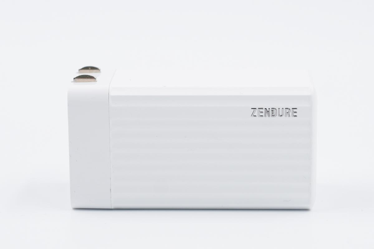 纯白色外壳看上去非常的干净,给人一种很舒服的感觉,壳体侧面角落将银色“ZENDURE”的品牌Logo烫印在壳体之上。