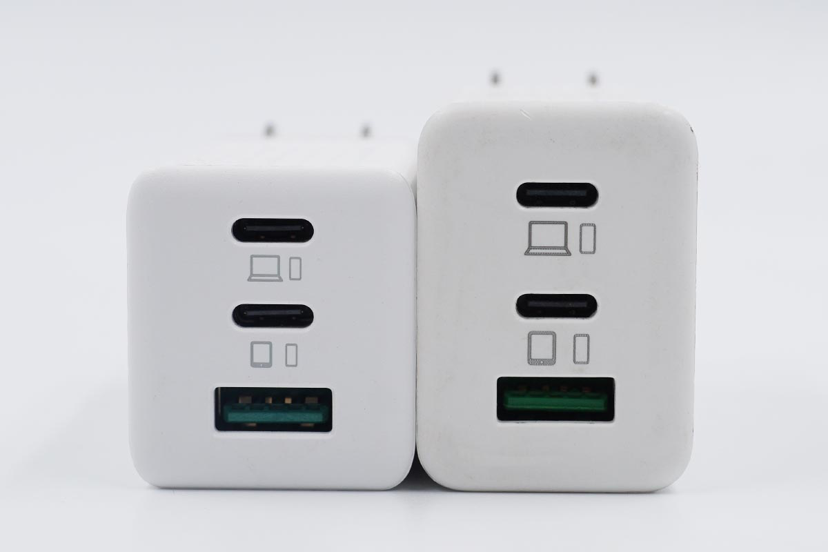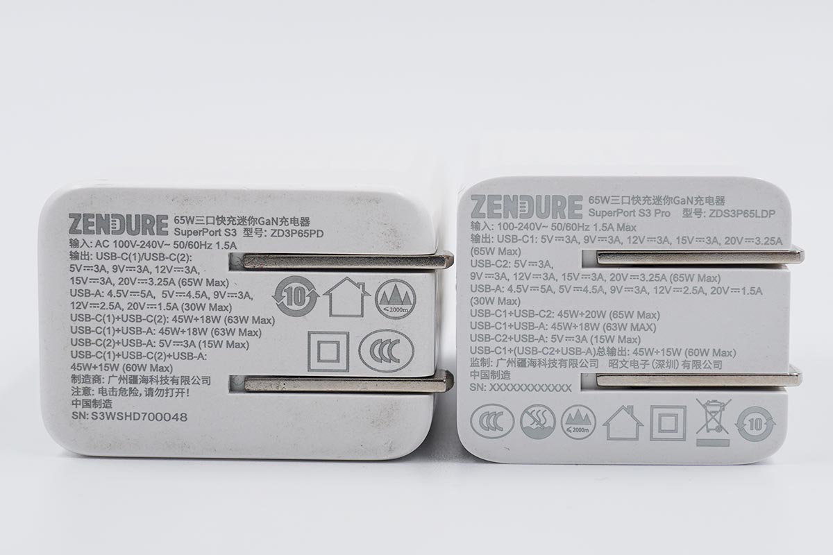 丝印的参数部分两款充电器也是相同的,均支持最大65W的充电功率。