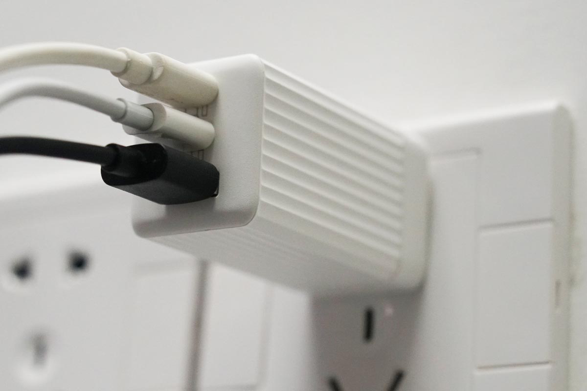充电器上插满充电线依旧稳固,搭配墙插是否会掉的问题大概率是不用担心的了,当然这还要根据具体的使用场景而定。
