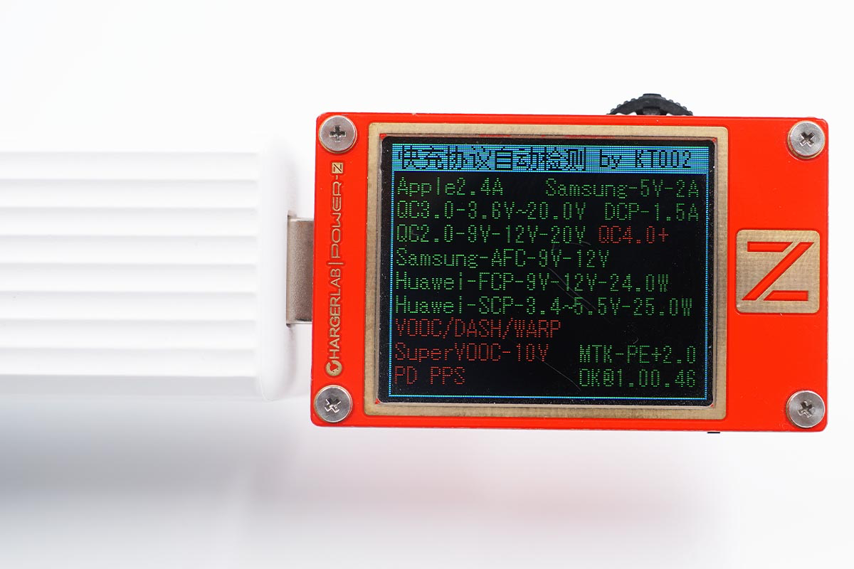 使用POWER-Z KT002读取USB-C1接口的快充协议,实测支持Apple2.4A、QC2.0、QC3.0、QC4+、AFC、FCP、SCP、PE、PD和PPS等快充协议。