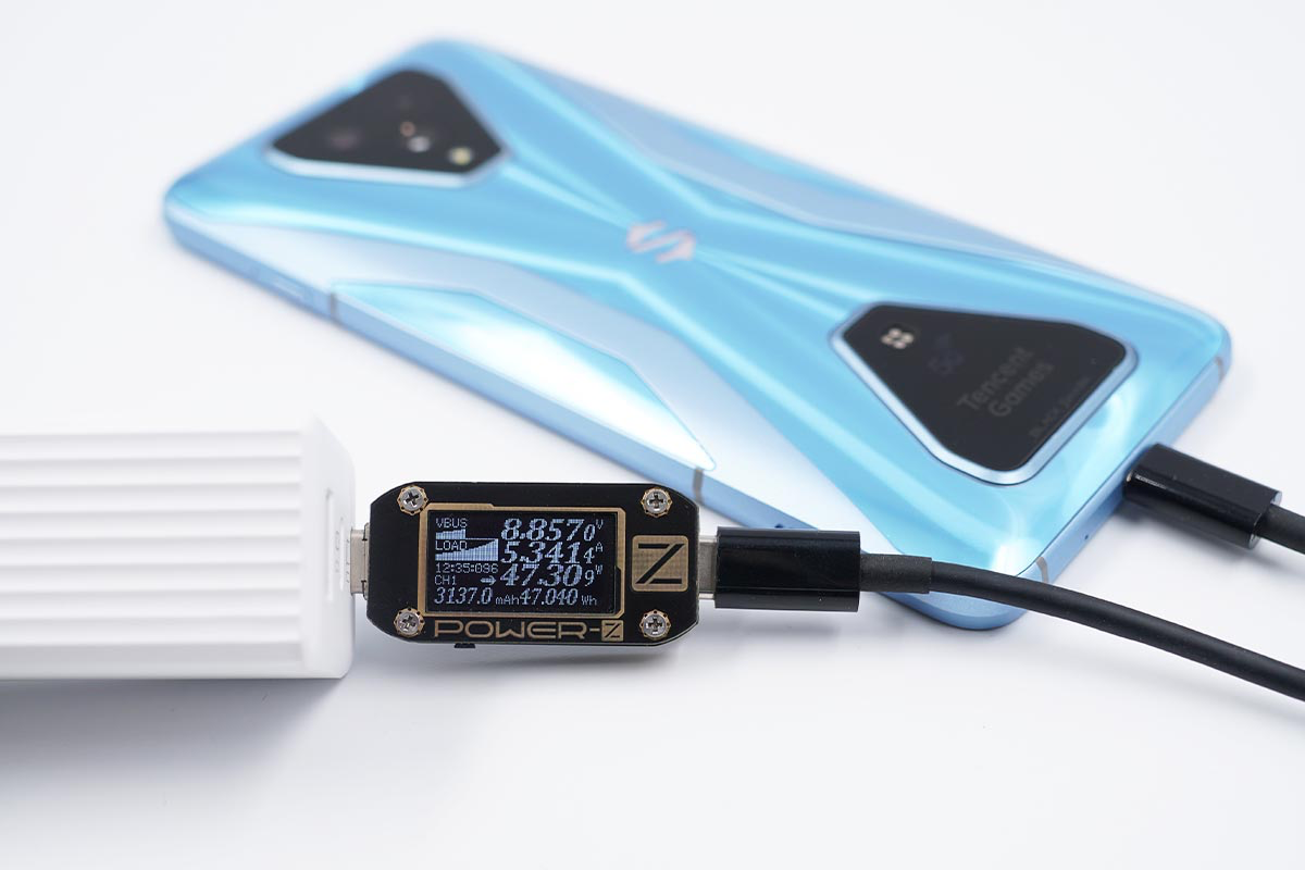 黑鲨3S支持PPPS/QC/PD快充协议,使用USB-C为黑鲨3S充电,功率为8.85V 5.34A 47.30W,此时处于PPS大功率快充状态。