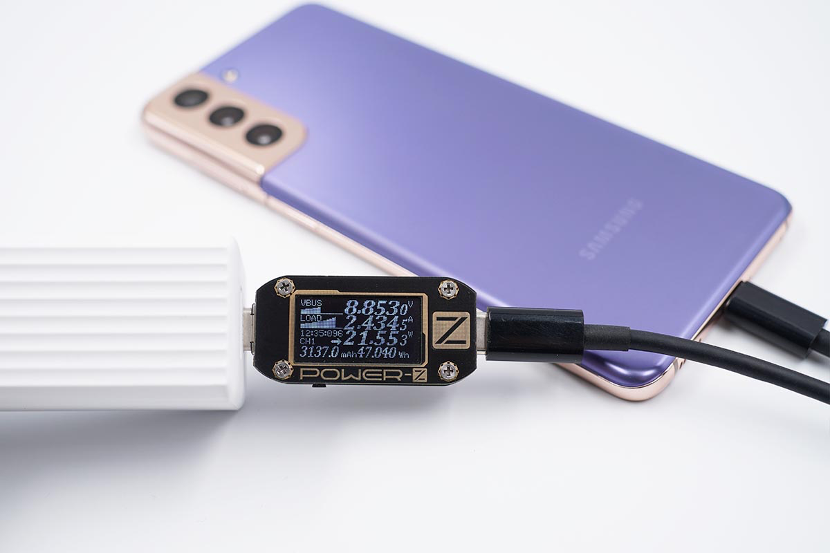 三星S21支持PPPS/QC/PD快充协议,使用USB-C为三星S21手机充电,功率为8.85V 2.43A 21.55W,征拓S3 Pro氮化镓充电器可以为三星S21提供PPS大功率快充。