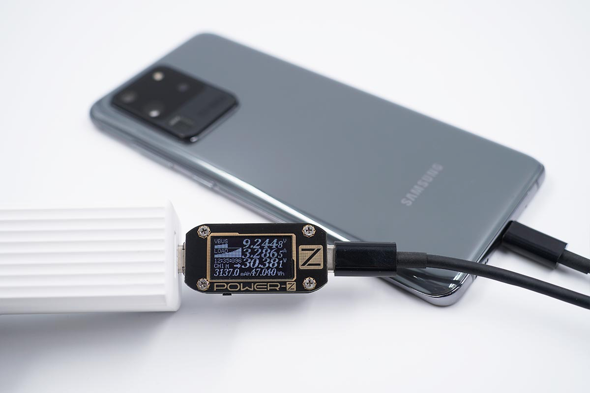 三星S20 Ultra支持PPPS/AFC/PD快充协议,使用USB-C为三星S20 Ultra手机充电,功率为9.24V 3.28A 30.38W,征拓S3 Pro氮化镓充电器同样可以为三星S20 Ultra提供PPS大功率快充。
