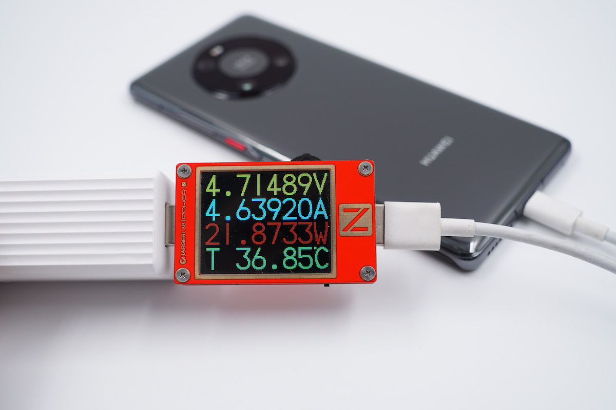 华为Mate40 Pro支持SCP/FCP/PD快充协议,使用USB-A为华为Mate40 Pro充电,功率为4.71V 4.63A 21.87W,此时处于SCP快充状态。