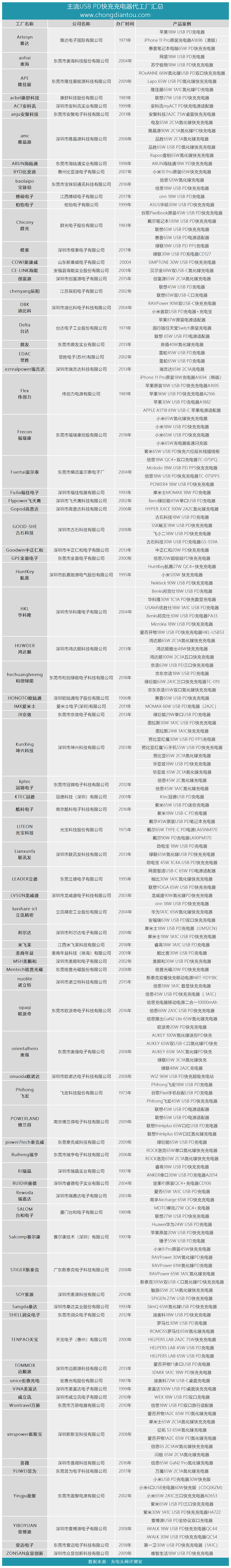 充电头网专门针对快充成品工厂整理了一份名单,这些快充企业部分已经投产氮化镓快充,还有不少正在积极筹备进入这块市场。
