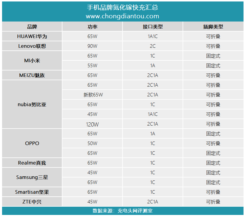 包括上文中提到的10家手机厂商推出的18款氮化镓快充充电器在内,