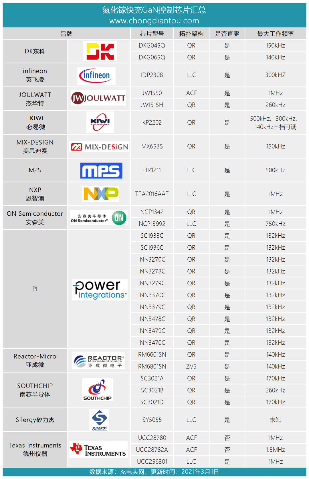 Transphorm五家品牌的氮化镓功率器件正式量产出货并成功导入了终端产品;但在充电头网最新的整理的供应商名单中,已有十余家国内外氮化镓原厂推出了多达数十款氮化镓芯片。