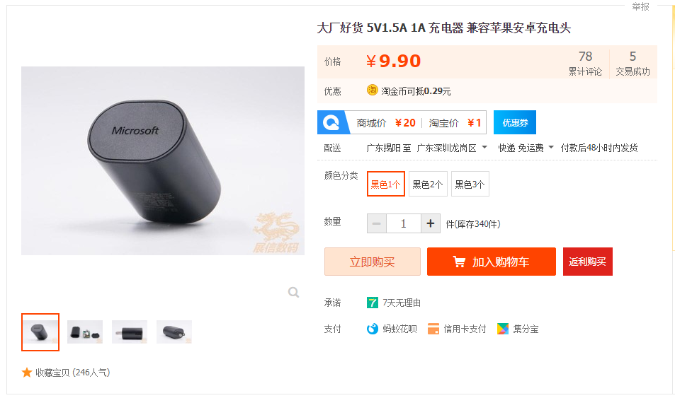 这批微软5V 1.5A充电由器尔康代工(给诺基亚、苹果、华为等国际一线品牌的代工厂),是诺基亚被微软收购后的产品。充电器丝印有Microsoft标志,型号是AC-60U,美规,输出5V电压足1.5A电流 实测1.67A,用来替代iPhone原装充电器也是不错的选择。