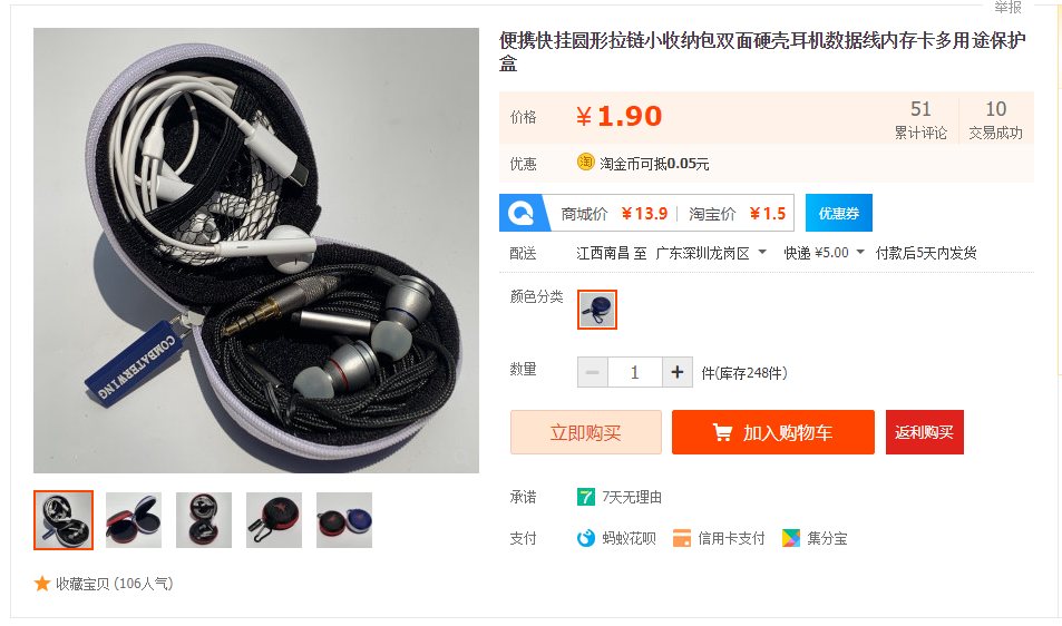 这款点进去仔细看图,会发现上面有知名大厂某克的英文logo,牌子品质大家都知道。拉链结实防水,双面防压抗摔结构,保护耳机数据线等不受损害。整体小巧便携,绒布内衬,网袋隔离设计,各种产品各居其所,减少混乱,避免缠绕。