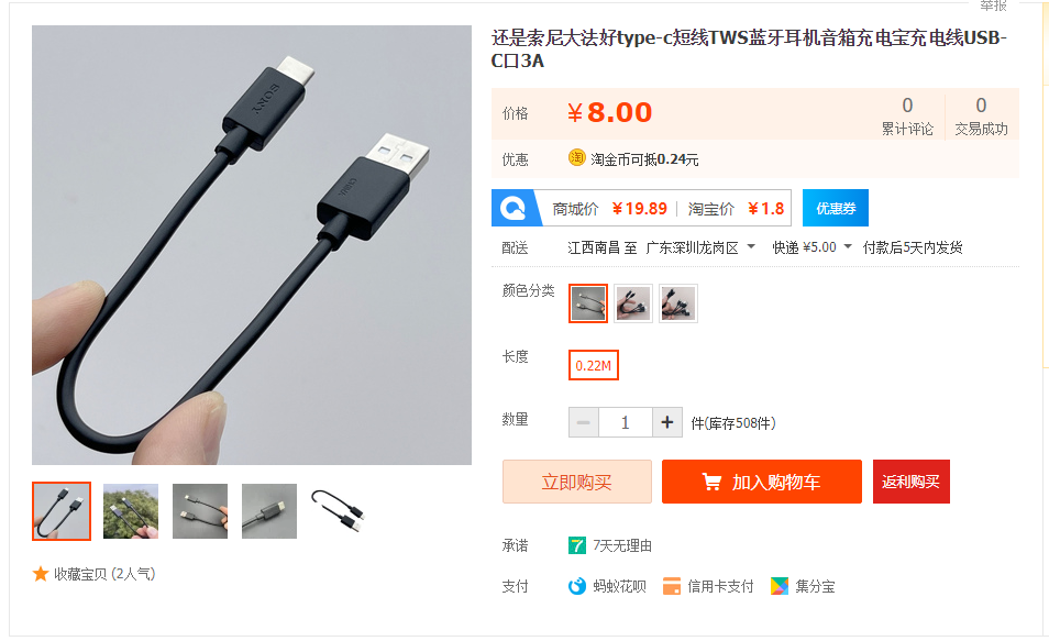 这条索尼A2C充电线长度为22cm,可以过3A大电流,WH-1000xm3 SP900 C200 WH-H810等通用,也可以充TYPE-C接口的TWS蓝牙耳机,头戴蓝牙耳机,以及蓝牙音箱,手机,充电宝等。线身带屏蔽网,USB口和C口两头均金属包裹,挺耐用的好线。