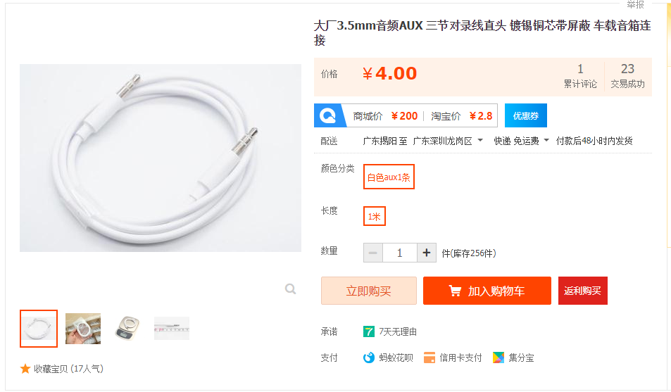 3.5mm音频AUX 三节对录线,全长约1米,3.5mm音频插头,单个净重约14克。做工质量很好,大厂货,这个价格就等于卖个人工费!有这方面需求的用户入手肯定没错了,价格太美丽。