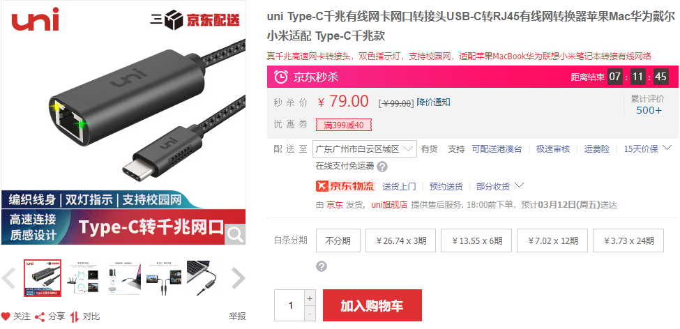 这个转接头则是用来接网线的,虽然我自己电脑连的WiFi,但是想要稳定肯定还是网线靠谱。而且买网口转接头多数是千兆,所以这样的产品就是属于功能单一、稳定可靠类。