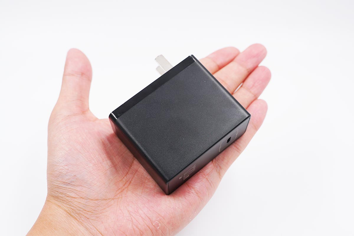 拿在手上的直观感受,这款充电器的特点在于120W大功率输出,内置氮化镓元器件,而且是手机标配的充电器。