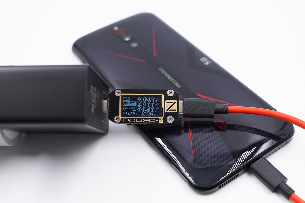 使用充电器为努比亚红魔5充电,功率为9.04V 4.91A 44.41W,此时处于PPS快充状态。