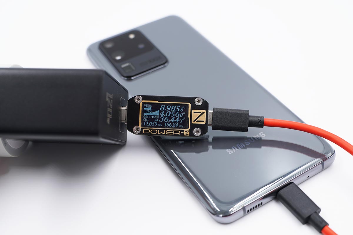 使用充电器为三星S20 Ultra充电,功率为8.95V 4.06A 36.44W,充电器可以为三星提供36W的PPS大功率快充。