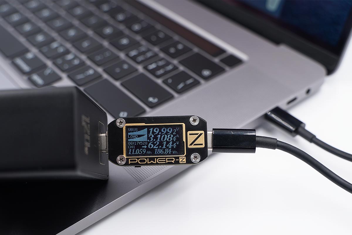 MacBook Pro仅支持USB PD快充,使用充电器为MacBook Pro充电,功率为19.99V 3.10A 62.14W。