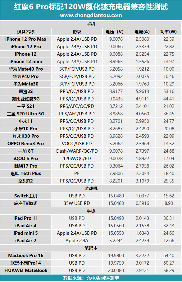 对于支持常规PD快充的iPhone 12 Pro Max也可以提供22W+的快充功率。