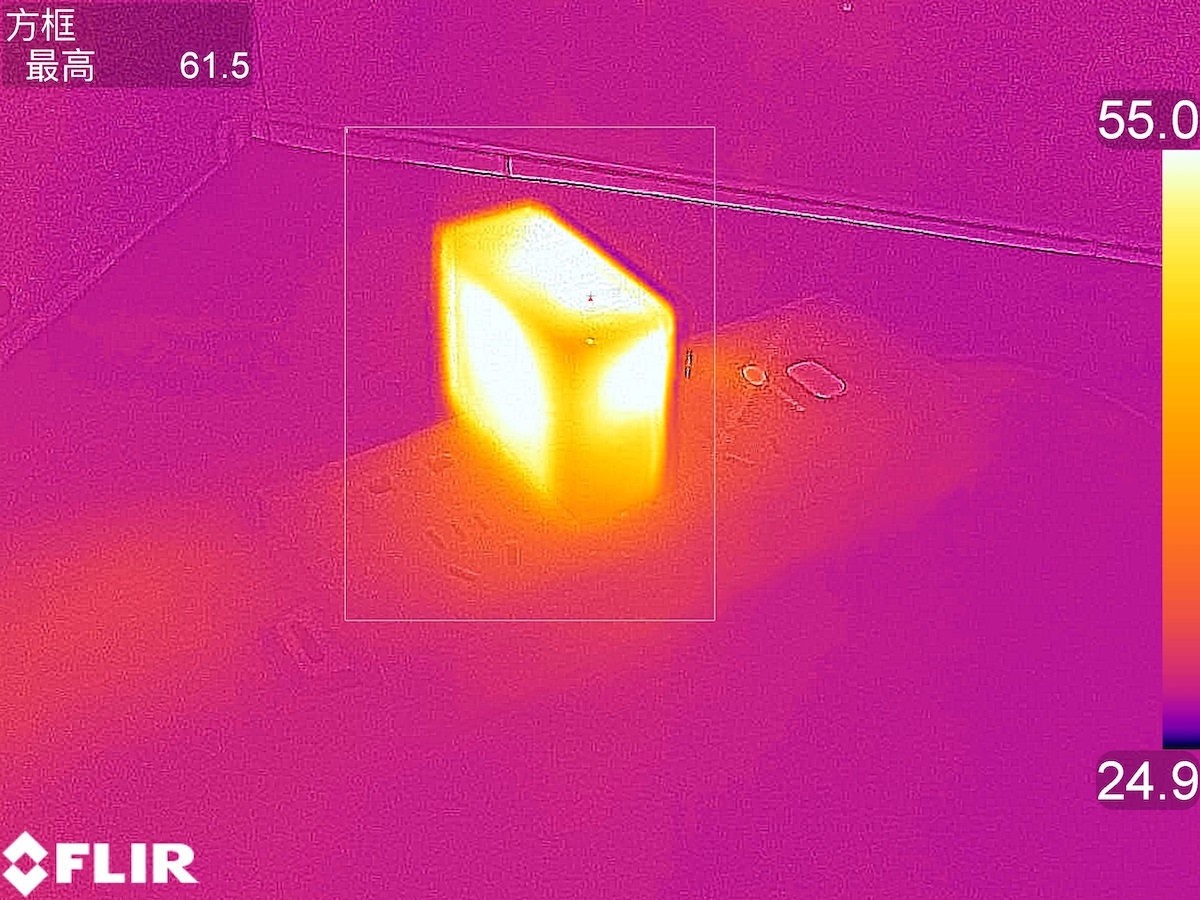 充电器以65W的功率持续输出1小时后采集到充电器表面最高温度为61.5℃。