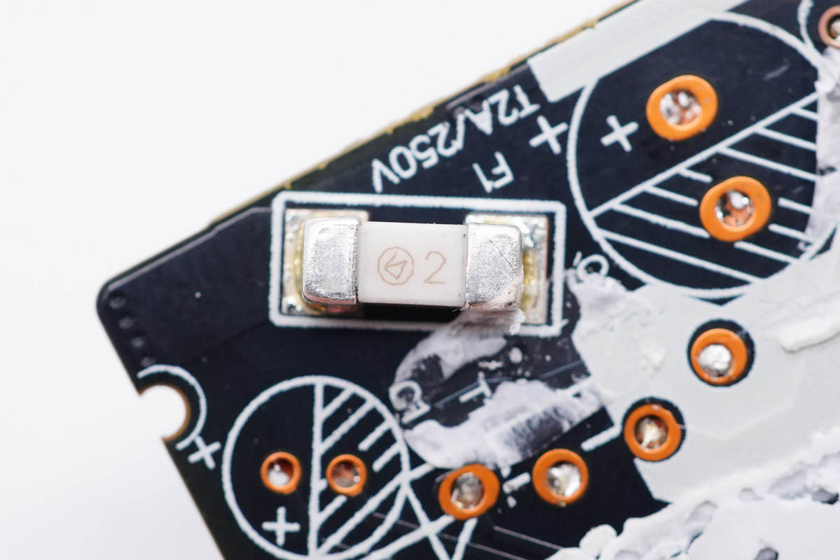 PCB板侧面一览,另一颗高压滤波电解电容也是来自艾华。