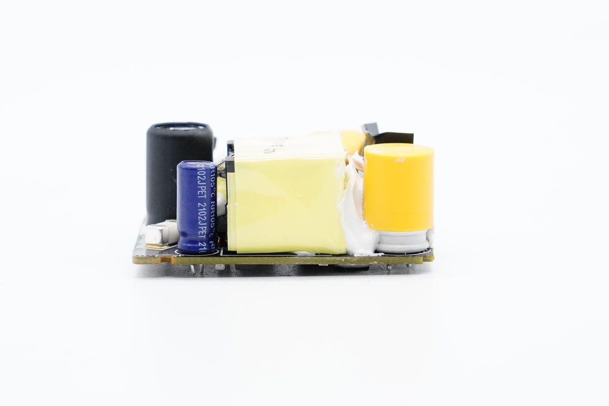 充电头网通过拆解了解到,充电器采用了必易微KP22306+KP41262高集成快充方案,初次级控制器均集成MOS管,对于缩短充电器生产周期很有帮助。另外的变化是采用慧能泰HUSB350协议IC以及东芝输出VBUS开关管。而对于影响充电器使用寿命的电容依旧来自艾华,整体用料依旧扎实可靠。