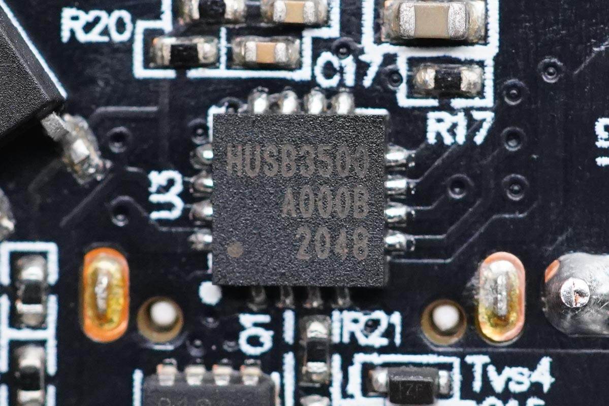 USB PD协议芯片采用慧能泰HUSB350。这是一颗高性能、高集成度的USB TypeC Power Delivery(电力传输)控制器,集成了 PD2.0、PD3.0、PPS、QC2.0/3.0、AFC、FCP、BC1.2、DCP、5V/2.4A等充电协议;适用于电源适配器、车载充电器、移动电源等应用场合;支持SOP-14L和QFN-16L两种封装形式。