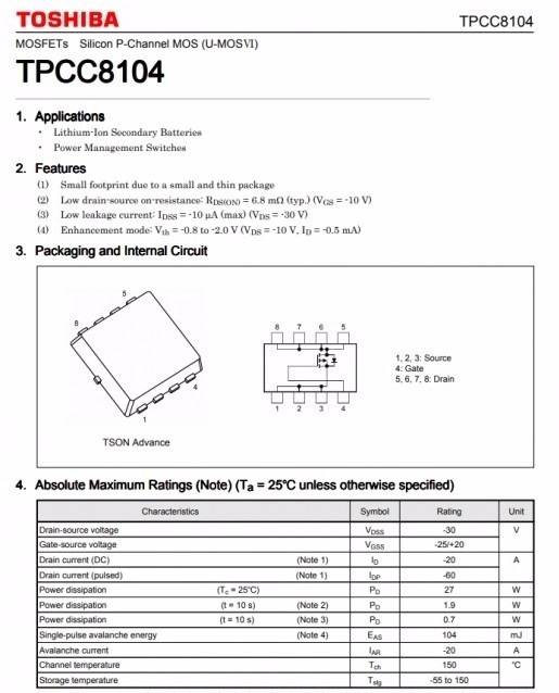 输出VBUS开关管采用东芝TPCC8104,PMOS,耐压30V。
