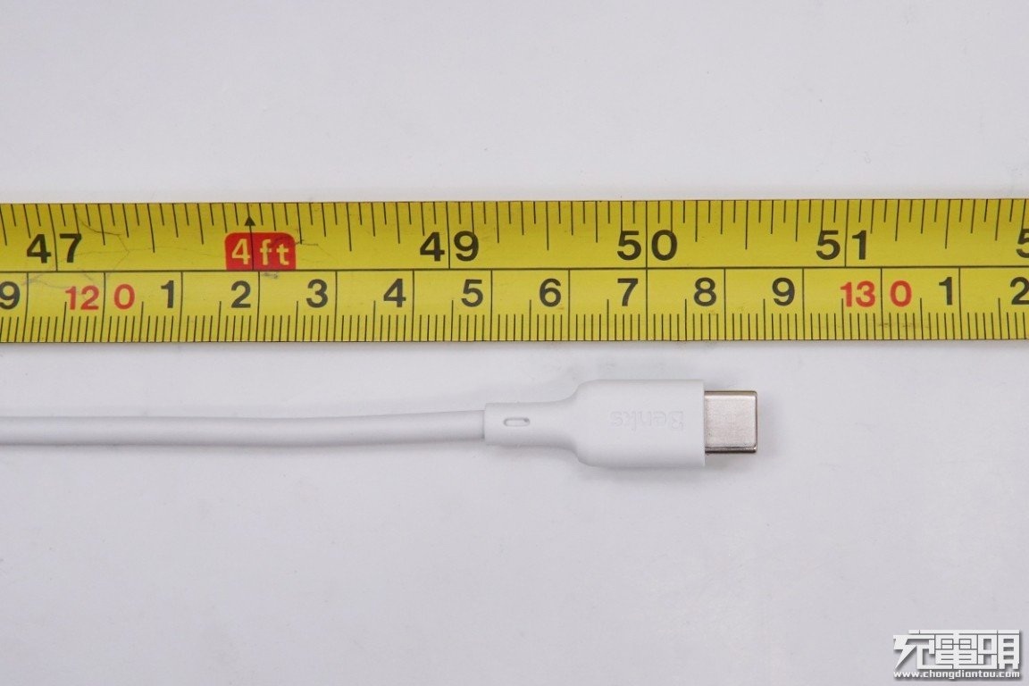 长度方面,相比起市面上常见的1米长度,邦克仕M13 USB-C to Lightning数据线卷尺实测数据线线长128cm,拥有更宽广的使用半径。