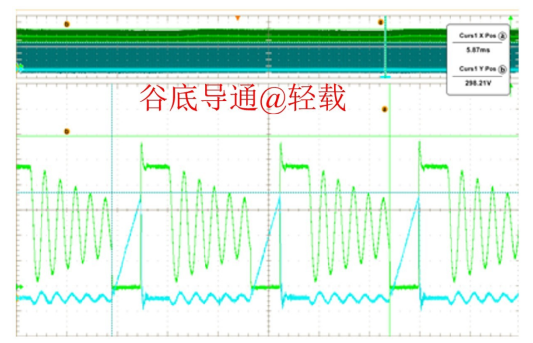 重载轻载,原边MOSFET均在谷底开通。