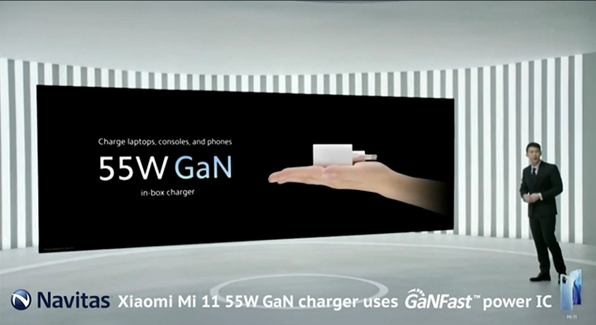近日,纳微半导体宣布其氮化镓(GaN)功率芯片已正式被小米55W氮化镓充电器采用(型号MDY-12-EQ),该充电器在小米11手机智能手机海外上市时,随机附赠。