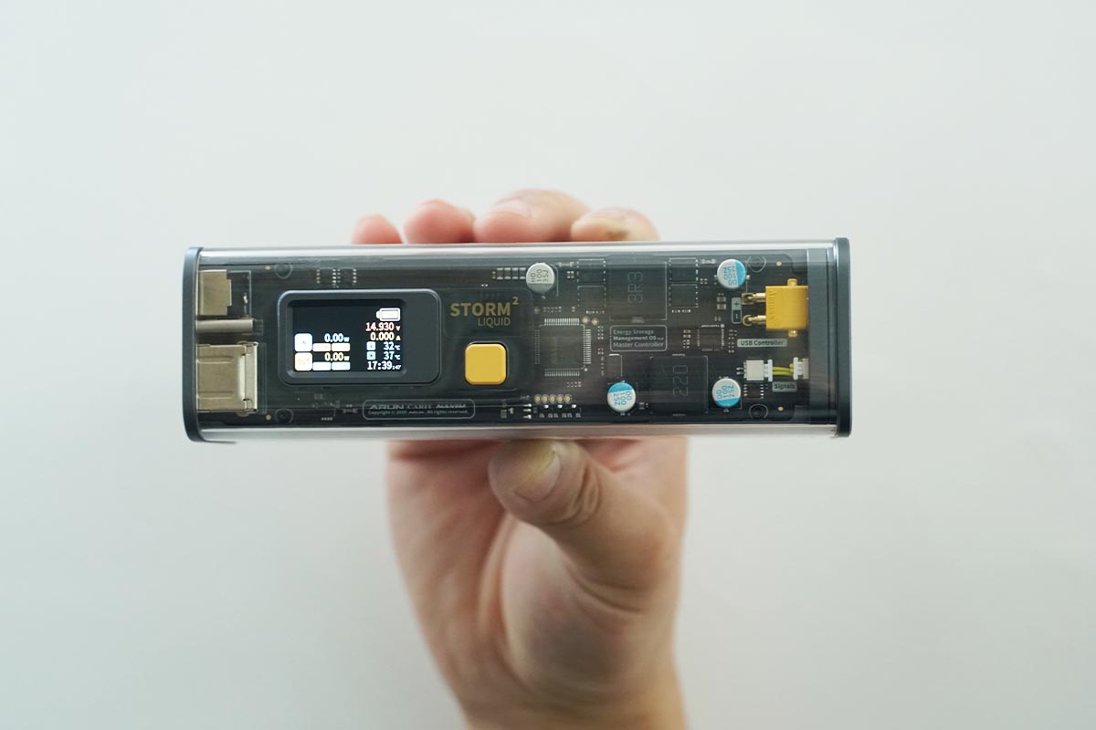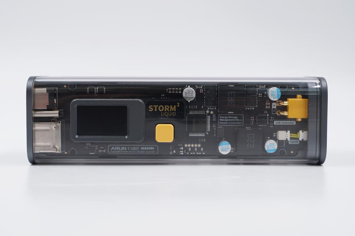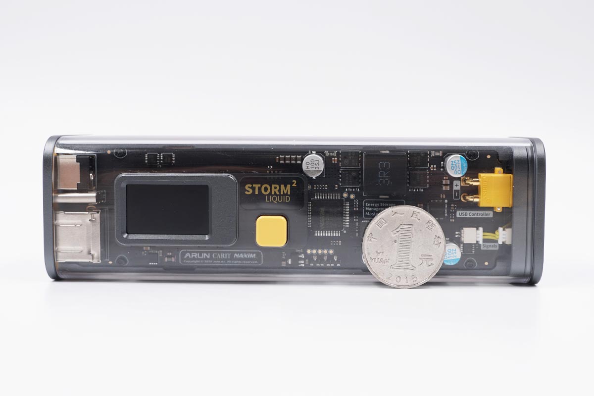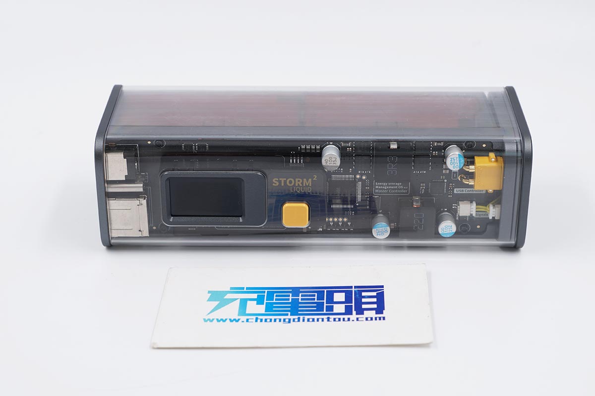 首先从外观设计来讲STORM 2 EDC移动电源就很与众不同,满满的赛博朋克风格,整个充电宝的壳体采用透明的设计,从外面就可以直接看到内部的硬件构造,PC电路板、电芯、芯片、电容一目了然,极具个性风格。