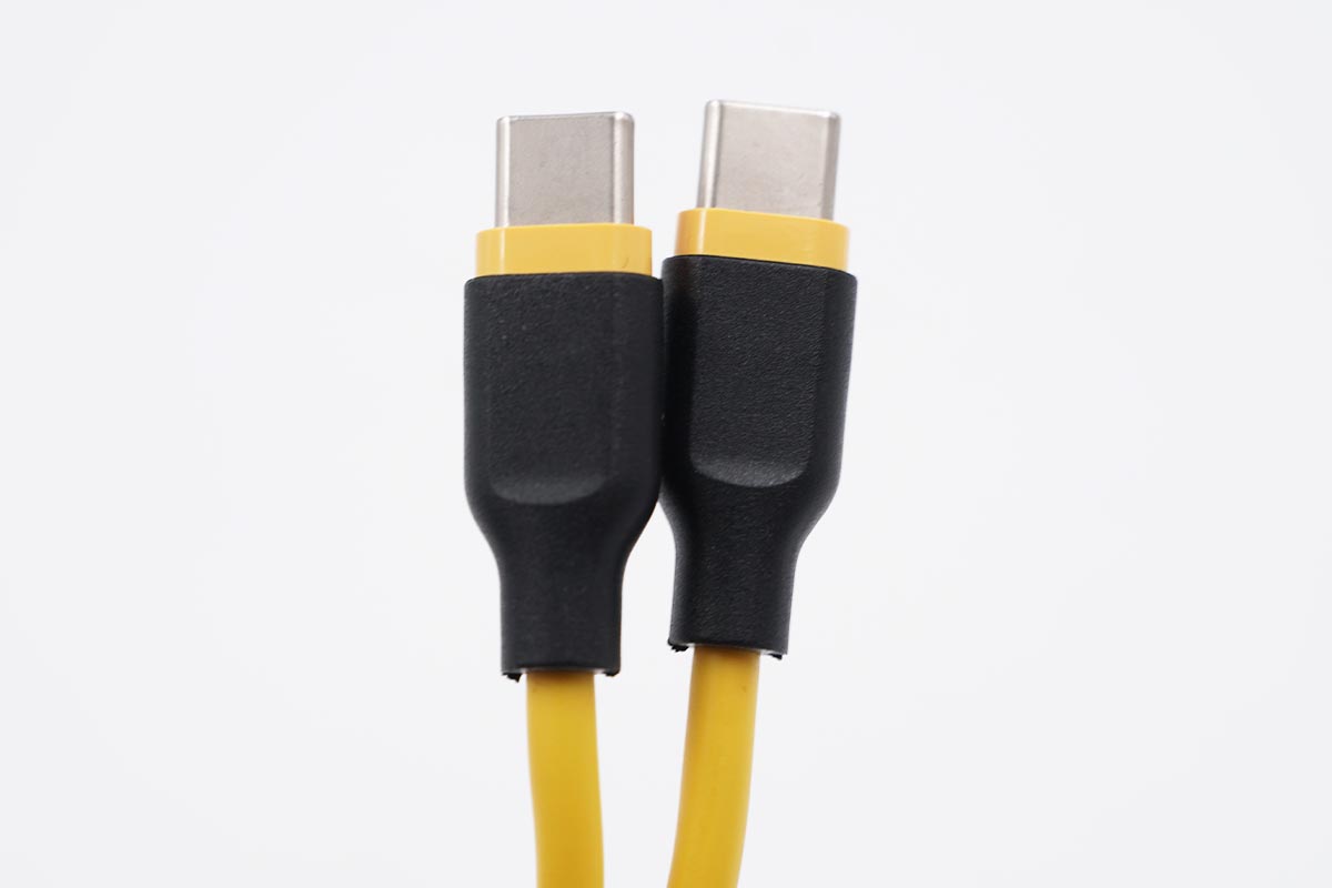 包装盒内附带了一根双USB-C的快充线,在线材的端子头和网尾处额外带有一层保护可以延长线材的使用寿命。