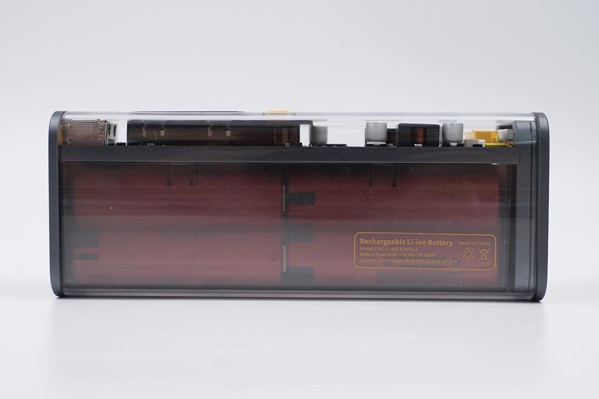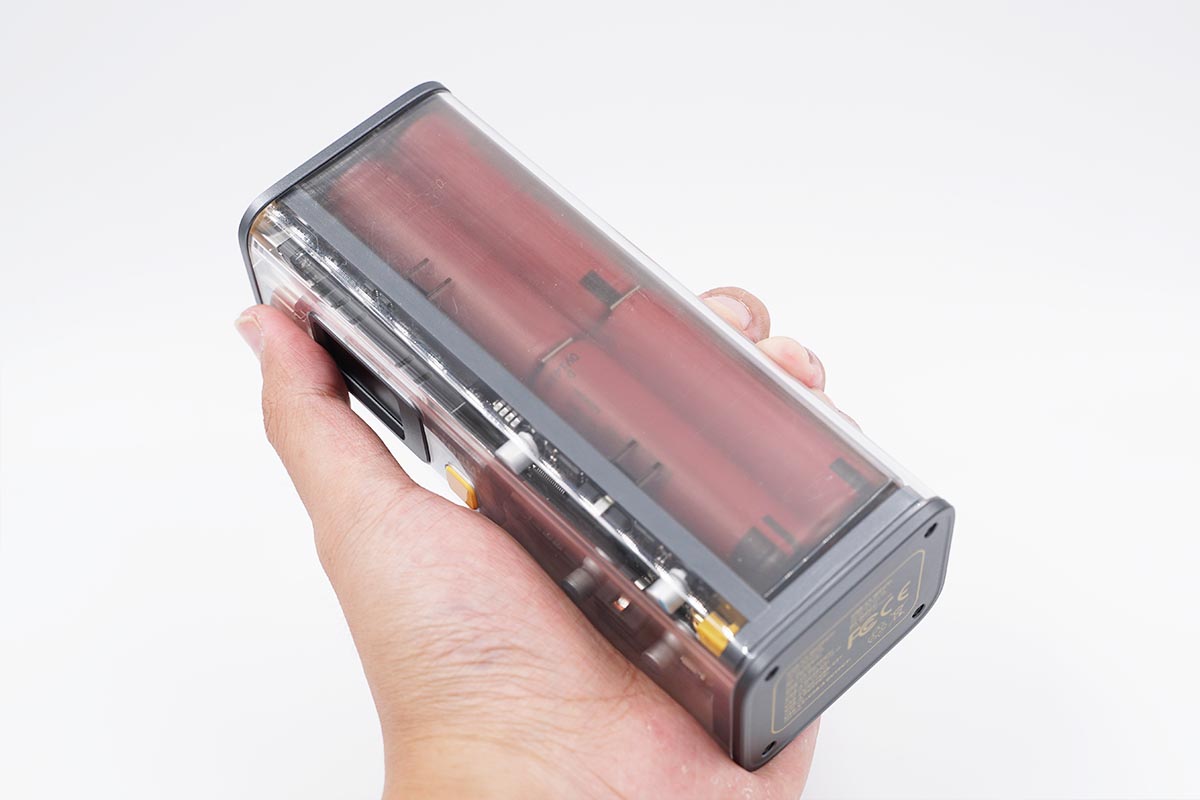 STORM 2 EDC移动电源的外观极具特色,首先是透明的机身外壳,肉眼就可以很直观的看到充电宝内部的硬件,下面一一来看充电宝的细节设计。