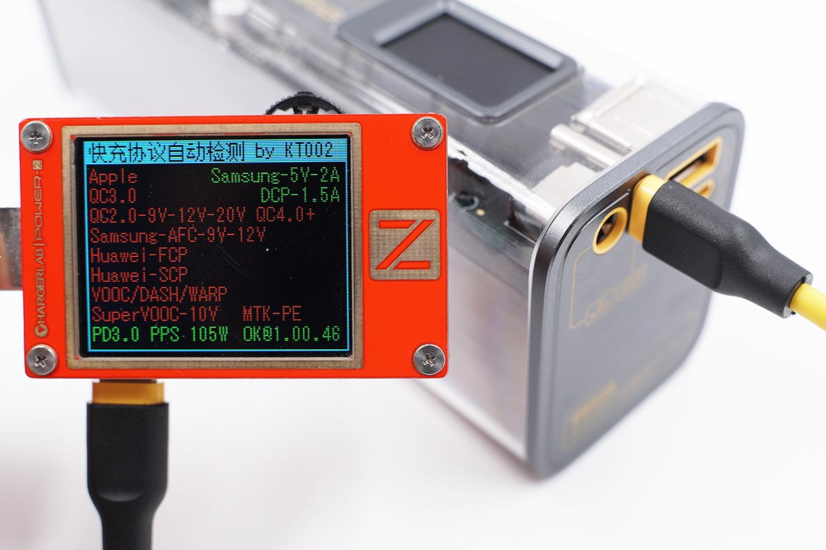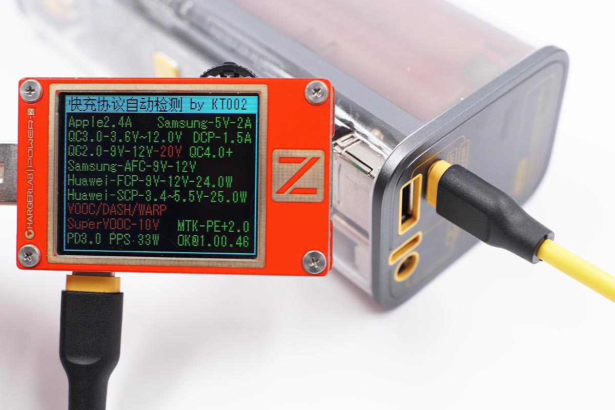 使用POWER-Z KT002读取USB-C1的快充协议,实测支持PD和PPS快充协议。