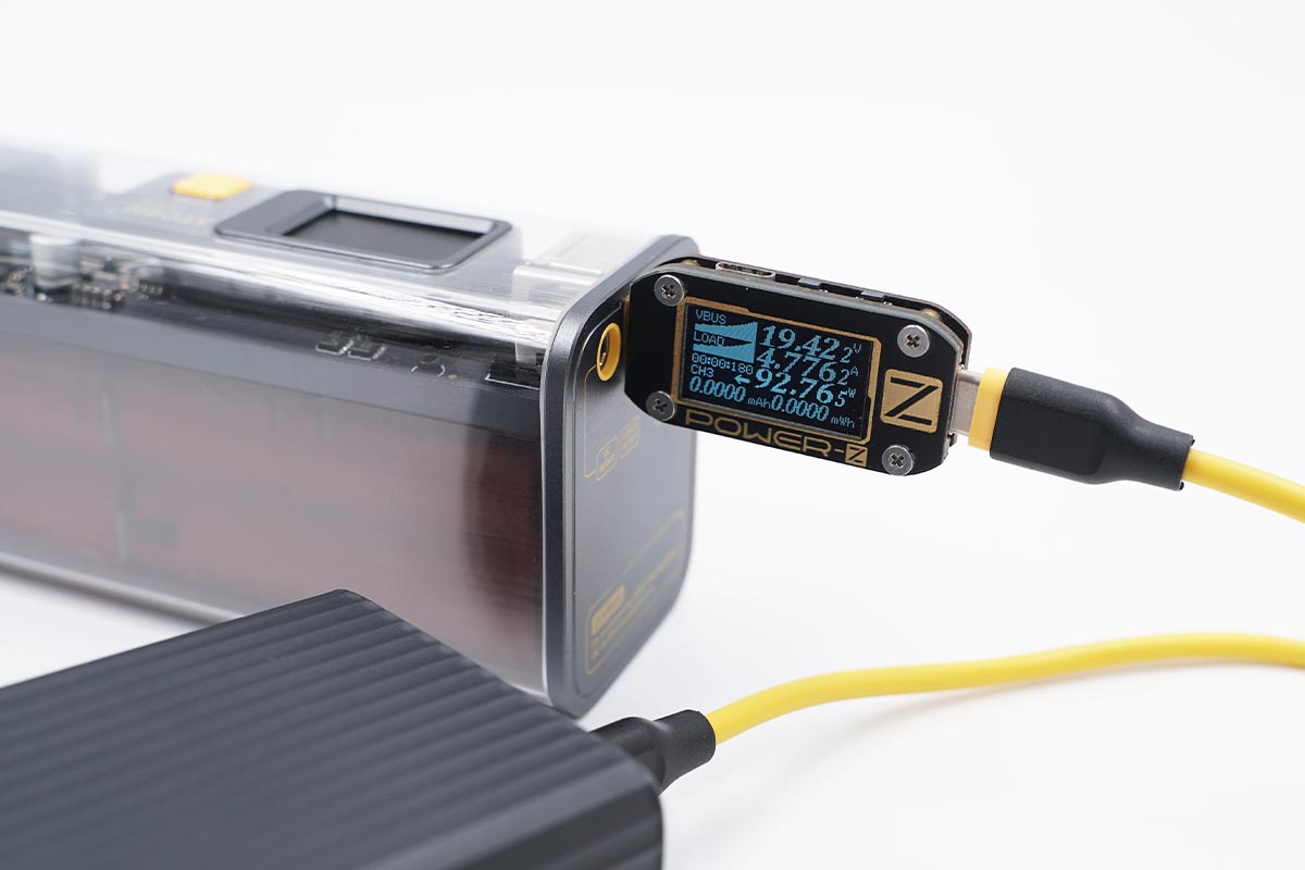 STORM 2 EDC充电宝支持100W的自充功率,实测使用100W PD充电器为充电宝充电时功率可以达到19.72V 4.77A 92.76W。