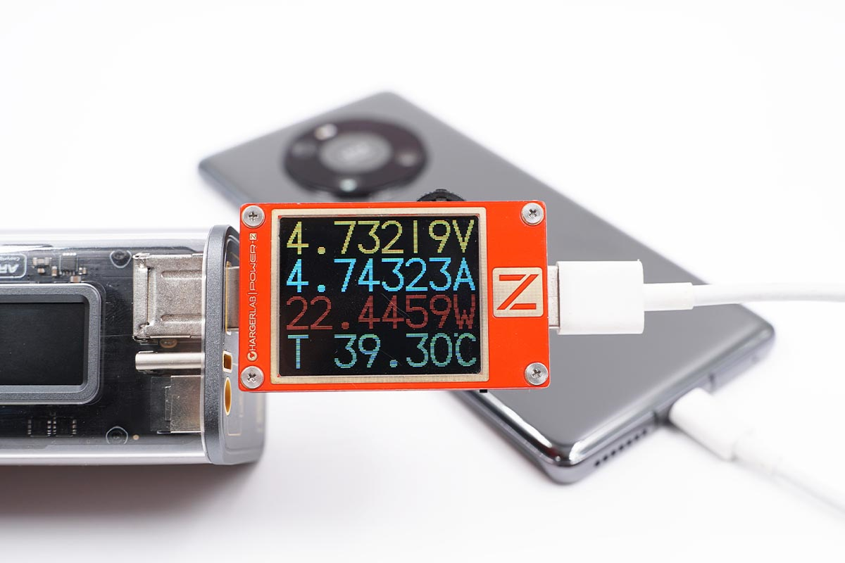 华为Mate40 Pro支持SCP/FCP/PD快充协议,使用USB-A为华为Mate40 Pro充电,功率为4.73V 4.74A 22.44W,此时处于SCP快充状态。