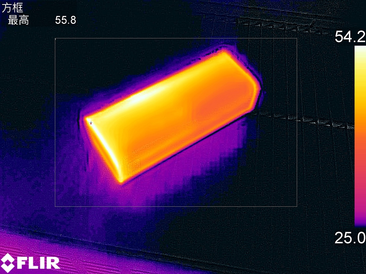 充电宝以100W的功率持续输出半小时后采集到充电宝表面最高温度为55.8℃。