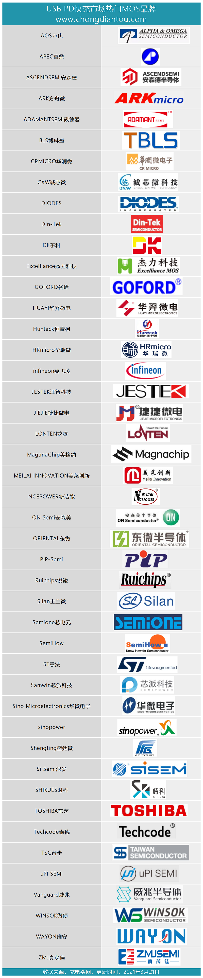 本期专题将围绕USB PD快充MOS展开,重点为大家介绍目前PD快充电源市场上主流的MOS供应商及其相关应用案例。