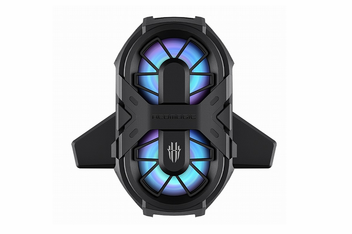 红魔双核散热背夹与市面常见的电子制冷片散热背夹不同,特殊的竖立长条形外观就像一架小飞机,好处是让红魔双核散热背夹在5厘米宽度下提供更大的散热面积。双风扇内部加入了RGB灯效,让它拥有浓厚的电竞气息。
