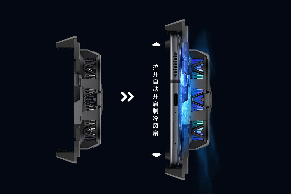 红魔双核散热背夹两个夹臂采用锯齿状倾斜橡胶块,避免刮伤手机边缘,同时内部加入霍尔开关,拉开自动感应开机方便使用。并且支持APP连接功能,可设置开启、关闭、灯效等,让用户随意调整各项参数。