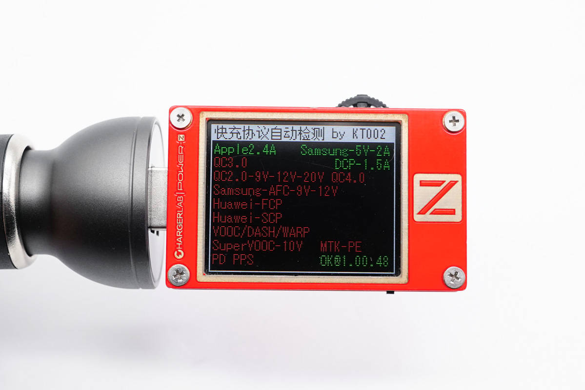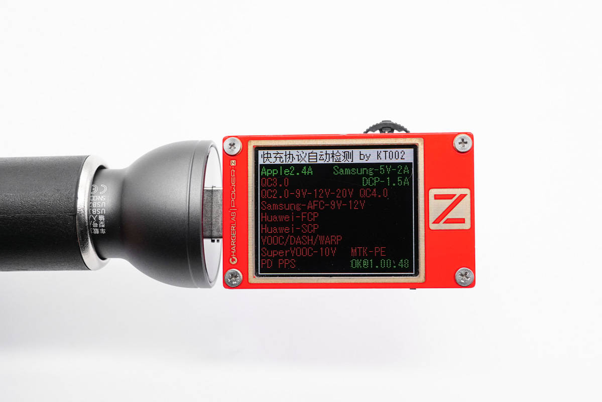 使用ChargerLAB POWER-Z KT002测得USB-A1口支持Apple 2.4A、Samsung 5V2A和DCP协议。